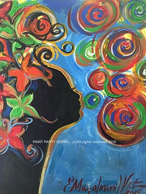 PaintPartySocial_ Back_Multiple paintings Interested in commissioning a piece of artwork? Let's discuss the possibilities.  Call 832.535.2630 or email: mayaimani@aol.com today!